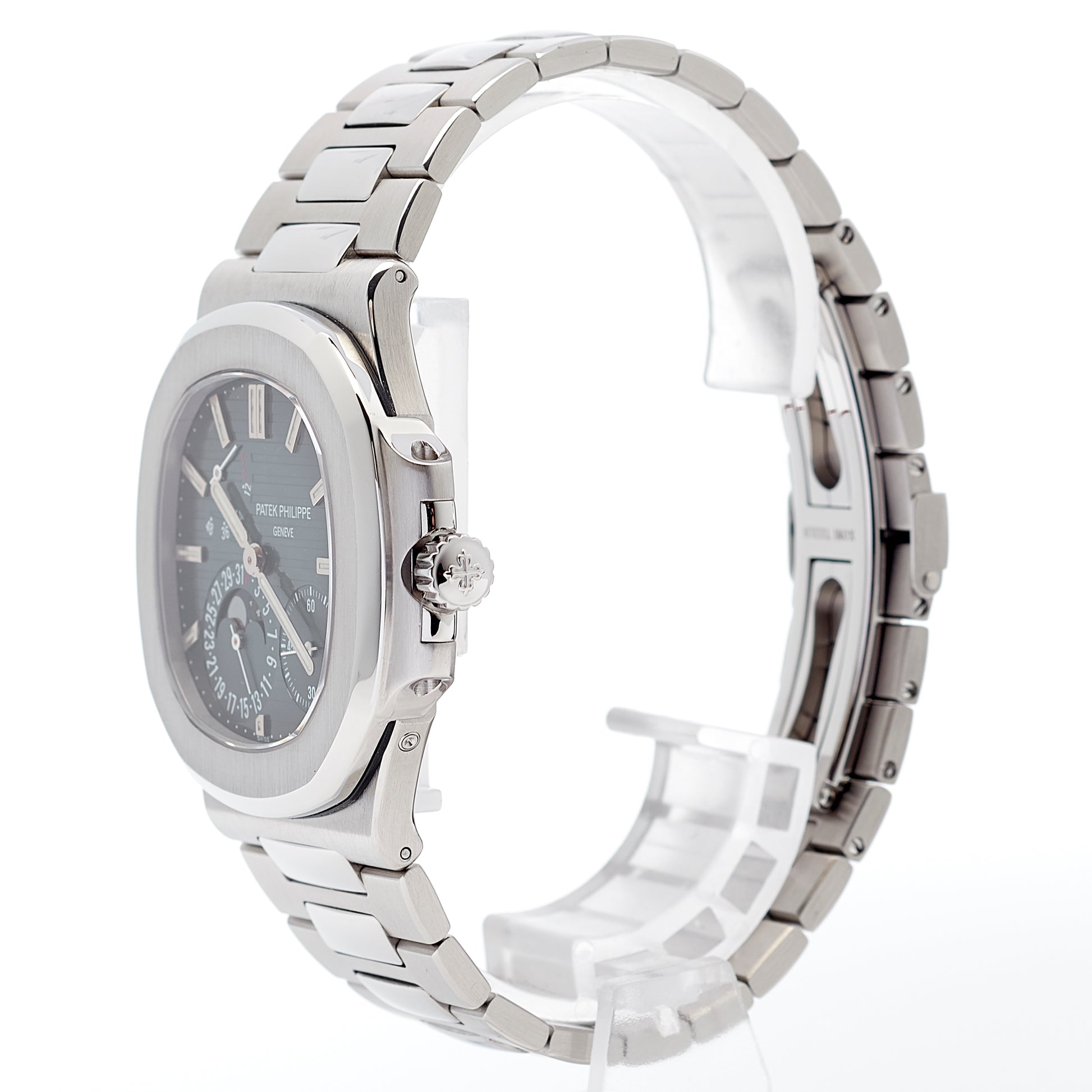 The Patek Philippe Nautilus reference 5712 has the same exceptional reputation that also characterizes the reference 5711. It is the epitome of a luxurious steel watch. Only in one regard it is probably even more special than its sister model. While the 5711 is only equipped with a date, the reference 5712 is much more complicated. Inside ticks the legendary Patek Philippe caliber 240 (as 240 PS IRM C LU) with a golden micro rotor, which, in addition to the date, also offers a small second, power reserve display and moon phase. This reference probably connects the two worlds in which Patek Philippe excels more than any other: As the inventor of numerous complications, Patek Philippe is considered the most influential watch manufacturer in history and, with the introduction of the Nautilus, also one of the pioneers in the segment of luxurious steel watches. Hardly any watch represents these two facets better than the 5712.